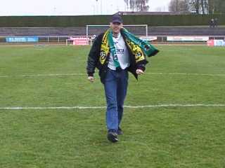 Nach dem Schlußpfiff feierten wir zuerst Bernd Kaiser, da niemand vermutete, daß von der Mannschaft jemand vorbeischaut.