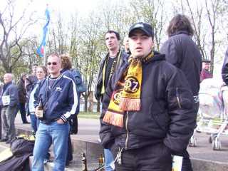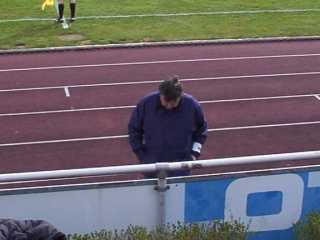 Ich hoffe nur, ich bekomme das mit dem Zoom mal richtig in den Griff und kann das dann auch Herrn Kaiser beibringen. Zurück an der Zapfstelle gab ich zuerst mein Leergut zurück und hängte dann das Banner ab. Als ich mich bei Ralf für die schlechte Musikleistung in der Halbzeit beschwerte, erfuhr ich, daß dieser tolle Schiedsrichter die Pause zu kurz sein ließ und deshalb das Lied nicht zu Ende gespielt werden konnte. Acht Minuten sind für die Halbzeitpause einfach nicht genug! Der Kerl hatte wohl noch was vor.