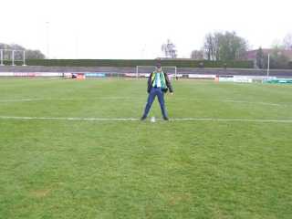 Damit täuschten wir uns aber diesmal. Mustafa Parmak machte den Anfang und insgesamt klatschte ungefähr die halbe Mannschaft bei uns ab. Immerhin. Und für die Einstellung und die gezeigte Moral zollte ich den Jungs auch Respekt. Auf dem Platz trieb Frank noch allerlei Schabernack und wollte unbedingt (gell) von mir abgelichtet werden. Dazu begab er sich sogar zum Mittelpunkt der Welt.