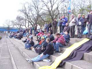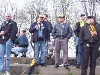 Dann sollte unser 90-Minuten-Dauersupport losgehen, wurde aber dadurch verhindert, daß Einige mit Bierholen beschäftigt waren. So blieb es anfangs mal wieder recht ruhig bei uns und mir fiel mal auf, wie Wenige wir eigentlich sind.
