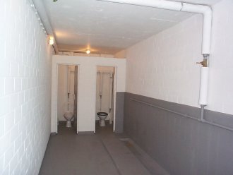 Die hatten etliche Doppelhalter und ein Megaphon dabei und erinnerten mich mit ihrem Gehabe an unsere Nachbarn in der Verbandsliga. Naja. Vor dem Anpfiff machte Heiko noch Bekanntschaft mit den dortigen sanitären Anlagen ... und war begeistert. So begeistert, daß Benny ein Foto (er hatte inzwischen Batterien vom Eise bekommen) davon machen mußte ... putzig.
