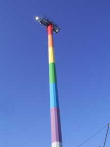 Witzigerweise gab es am Stand gegenüber der sanitären Anlagen auch gegrillte Würste ... wers nicht abwarten kann muß da halt mit leben. Woher die Würste gegenüber des Pissoirs kamen, will ich jedenfalls nicht wissen! Die Flutlichtmasten werden wahrscheinlich von Greenpeace gesponsert, oder die waren beim Errichten tuntig drauf.