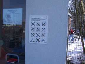 An der Kasse stand auch schon ein bekannter Sandhausener. Und auch die Karten waren rasch erworben. Acht Euro für den Stehplatz find ich aber etwas happig. Auf meiner Karte für das Köln-Spiel steht was von 7 Euro und ich dachte, das sei schon viel. Na ja. Die Verbotstafel gab auch gleich noch ein sinnloses Motiv ab.
