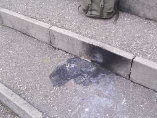 ... und dann mit einer köstlichen Wurst zurück zum Gerüst, wo noch der Rucksack wartete. An der Gegengeraden stand auch schon ein Tom mit dem gleich über den Verein und Erfolgsfans gesprochen wurde. Zwischendurch wurde auch Mustafa Parmak angepöbelt, der fast die Bande eingerissen hätte. Für Erheiterung sorgte auch wieder unser Stadionblatt, wo wir mit 8 Siegen und 21 Punkten in der Tabelle standen. Nach und nach kamen dann auch die 07-Fans dazu. Wie ich aber zwei von Jules Kameraden für Heilbronner halten konnte, ist mir aber bis heute nicht klar. Auch die Spuren der letzten Pyroaktion sehen interessant aus ...