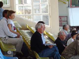Ich denke, daß er das auf der Tribüne gehört und verstanden hat. Ob dieser "Prominente" Eintritt bezahlte oder erst zur zweiten Halbzeit reinschlich ist mir nicht bekannt. Sehr putzig war dann noch die Pöbelei der Sitzenden. "Wer nicht sitzt ist Ditzinger, hey, hey!" Da setzten sich dann tatsächlich alle dazu, da man dann mit einem "Steht auf zum Analverkehr" weitermachen konnte. Nen lustlosen Humba gab es auch noch und allerlei laute Rufe unserer Freunde aus Ungarn. Dann ging die unspektakuläre Halbzeit zu Ende und wir hatten wieder drei Punkte im Sack. Die Spieler kamen zu uns feiernden Fans ...