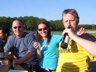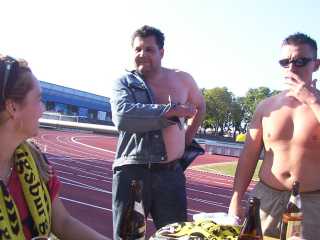 ... und es wurde eingepackt. Unterwegs wurde noch so manches Wort gewechselt, dem Chefwirt hilfreich unter die Arme gegriffen und die Reste des unsäglichen Flohmarkts angepöbelt. Desweiteren wurde auch noch Herrn Regner die Freude mitgeteilt ihn wieder auf den Beinen zu sehen. Unter dem Richterturm waren dann doch noch einige 07er versammelt und ich orderte erstmal ein Weizen. Zur Abwechslung war auch mal wieder unser Fußball-Kaiser vor Ort.