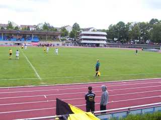 Zwar hatte Weinheim die erste große Chance, aber das Führungstor blieb den Gastgebern vorbehalten. In der 15. Minute war mal wieder Mustafa Parmak unser Held. Der Jubel war aber kaum zu Ende, da bekamen die Gäste drei Minuten nach dem Führungstreffer vom schwachen Schiedsrichter einen zweifelhaften Freistoß vor dem 16er. Unter unserem Oxafuß-Ruf schlug das Leder links oben ein und damit war der Oxafuß endgültig gestorben. Mit zunehmender Spieldauer wurden die "Unparteiischen" immer schlechter und das Spiel paßte sich an. Auch die Stimmung war gar nciht so toll und auch das üble polnische Bier, das der Postler spendierte konnte daran nix ändern.