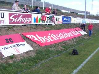 In dem Moment bedauerte ich, daß ich unser Banner nicht dabei hatte. Auch eine große Schwenkfahne wurde aufgezogen, wobei ich feststellte, daß deren Teleskopstange länger ist, als unsere. Dazu hingen dann noch die Trommeln an der Bande und die Gegengerade füllte sich auch noch ganz ordentlich.