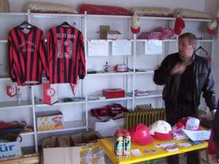 suchte ich den Fan-Shop auf, um einen Aufkleber zu erwerben. Die sind da recht gut sortiert ...