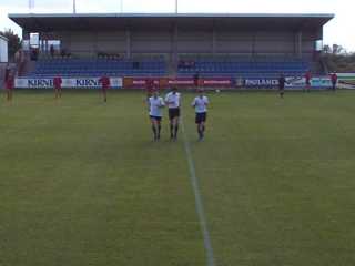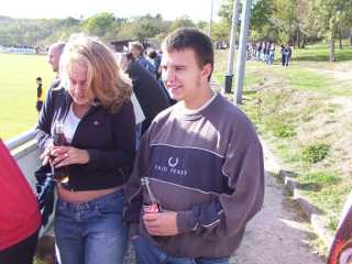 Das Spiel war eher schlecht und eher ein Fehlpaßfestival. Bei gegnerischen Standardsituationen hallte auch immer ein OCHSENFUSS durch das weite Rund. Der einzige Höhepunkt der ersten Halbzeit war aber eigentlich Knuts Auftauchen. Leider hatte er statt eines (wie versprochen) Kastens Bier nur eine Flasche Cola dabei.