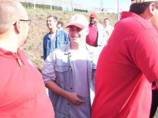 Dann sah ein Wodkabenni ein, daß er das Material für die Poloübergabe noch zu holen hatte. Rechtzeitig war er zurück und ohne Blaskapelle bekam ich unspektakulär den Abseitssteher-Polo, der sich über dem LGA-Pulli auch ganz gut machte. Damit konnte das Spiel also beginnen.