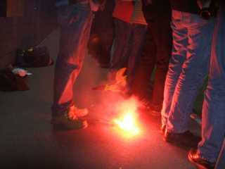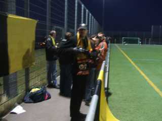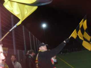 Mit zahlenmäßiger Überlegenheit auf dem Platz erwarteten wir nun einen Sturmlauf und daß unsere Jungs damit das Spiel noch umbogen. Aber Pfeifadeckele. Wir wollten weiterhin den Ball ins Tor tragen und so nahm das Schicksal in der 75. Minute mit einem Konter seinen Lauf. 2:0, verdammt! Ab da waren dann sogar Einheimische zu hören und es wurde etwas hin- und herbeleidigt. Zwar hatten die Gastgeber durch den Spielstand eigentlich die besseren Argumente, aber wen juckt das schon und zumindest außerhalb des Spielfeldes blieben wir siegreich. Vielleicht schafft es unser sensationeller Vorstand ja noch Protest einzulegen, da das Flutlicht teilweise ausfiel.