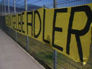 Wahrscheinlich reicht da das Taschengeld nicht für den Eintritt. Ereignislos ging dann das Spiel bis zur 67. Minute, als der Schiedsrichter endlich wegen wiederholten Foulspiels einen Grünen vom Platz schickte, was wir mit fröhlichen "Auf wiedersehn"-Gesängen begleiteten.